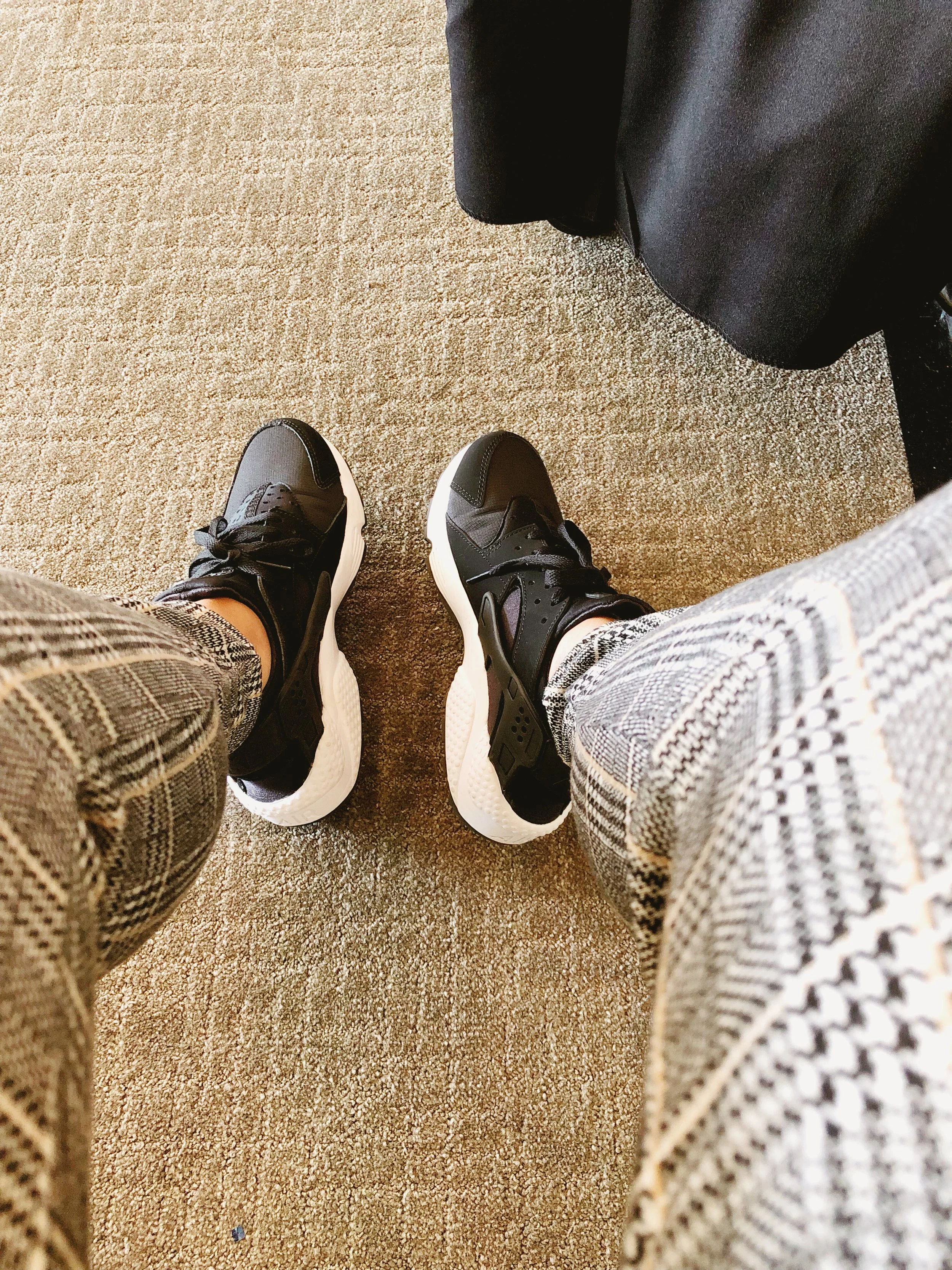 I wore sneakers with every outfit and I went from place to place with a breeze. If you are a thug and you have it in you to wear flats that will eventually hurt or heels, do you boo. But, I suggest wearing sneakers and getting sneaker chic..